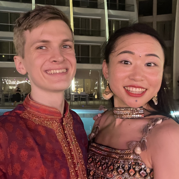 We stayed friends even though Charlie moved to Cambridge the next year. Cynthia visited Charlie in Cambridge, and we went to a party together. We're still arguing about who made the first move, but one thing lead to another, and we found ourselves in a relationship. Eight years later, here we are, still going strong.