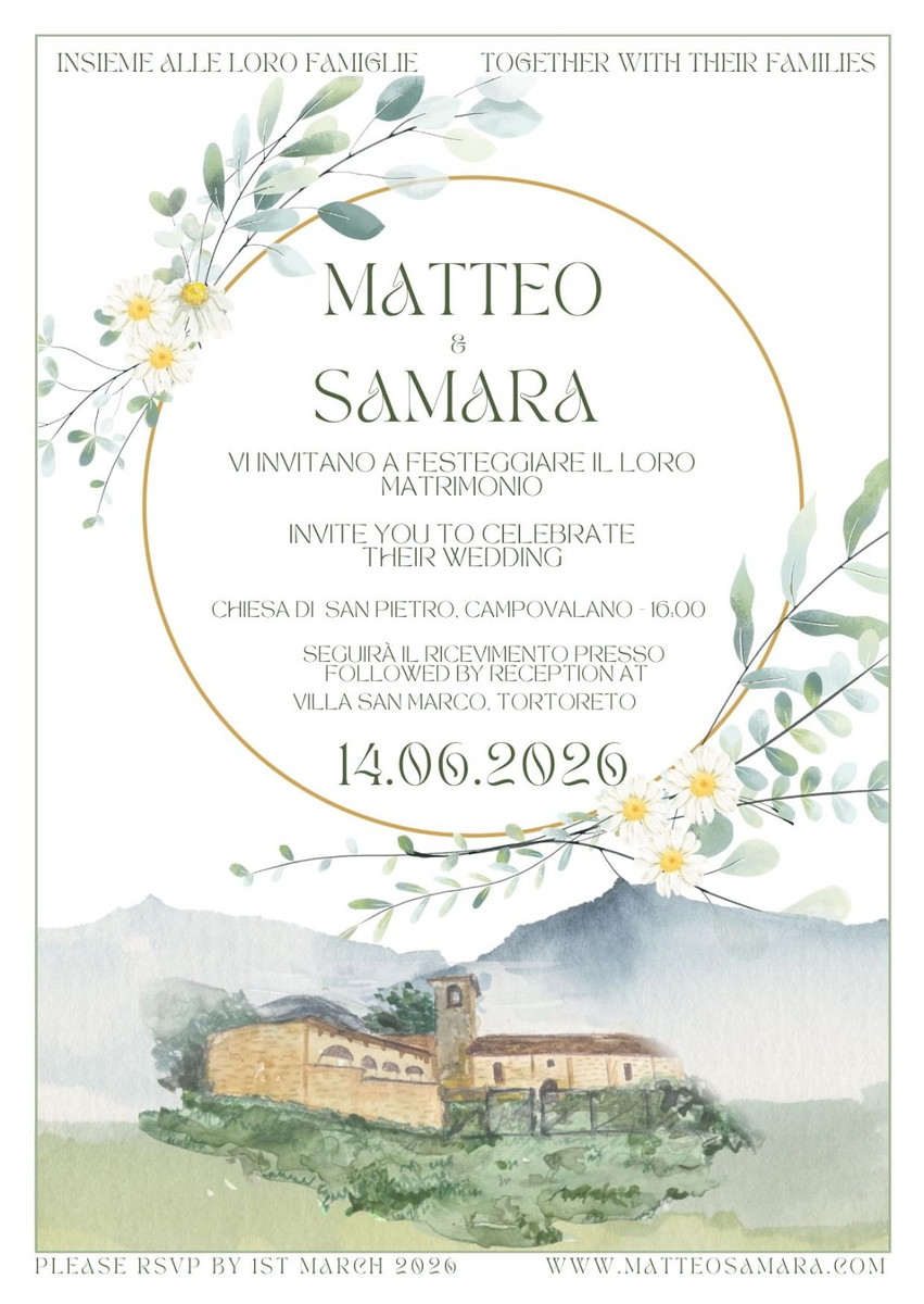 Per qualsiasi domanda, contattate Samara o Matteo prima del grande giorno. Il giorno delle nozze contattate: